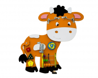 В бизиборд входит: разнообразные фигурки, разноцветные счеты, ленточки, шестеренки