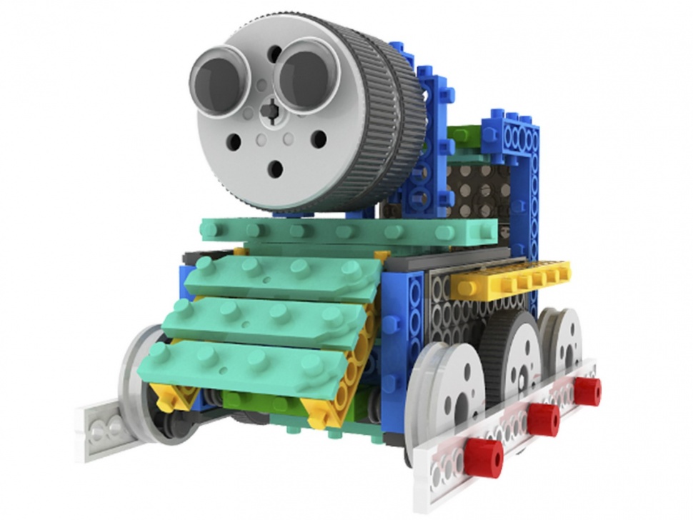 К построенным моделям подключается электропривод на шестеренках и гусеницах, с помощью дистанционного пульта дети управляют моделью.