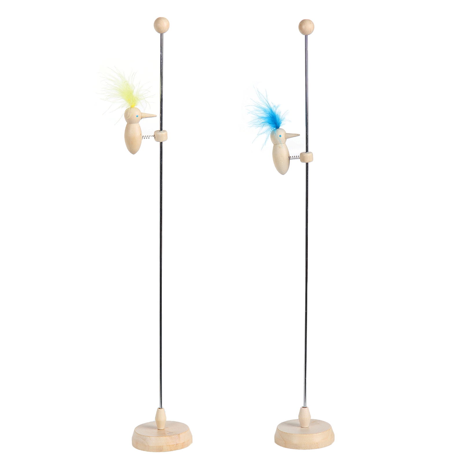 Игрушка представляет собой стержень, на котором сидят два дятла с цветными хохолками. Если их поднять вверх, потом они начинают спускаться вниз и стучать клювами по "стволу".