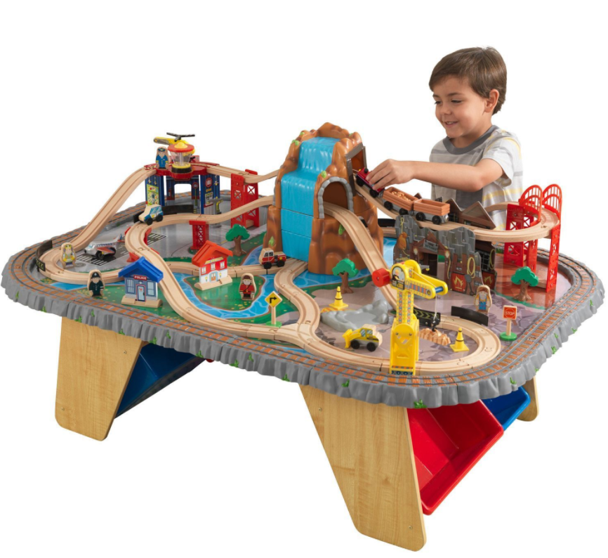 - В собранном виде представляет собой 3-уровневую железную дорогу с водопадом и проездом через шахты, парковками, горным переездом, аэропортом, стройкой и многим другим